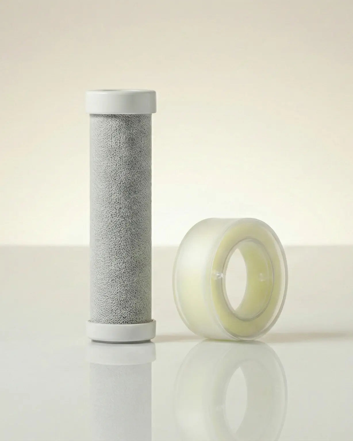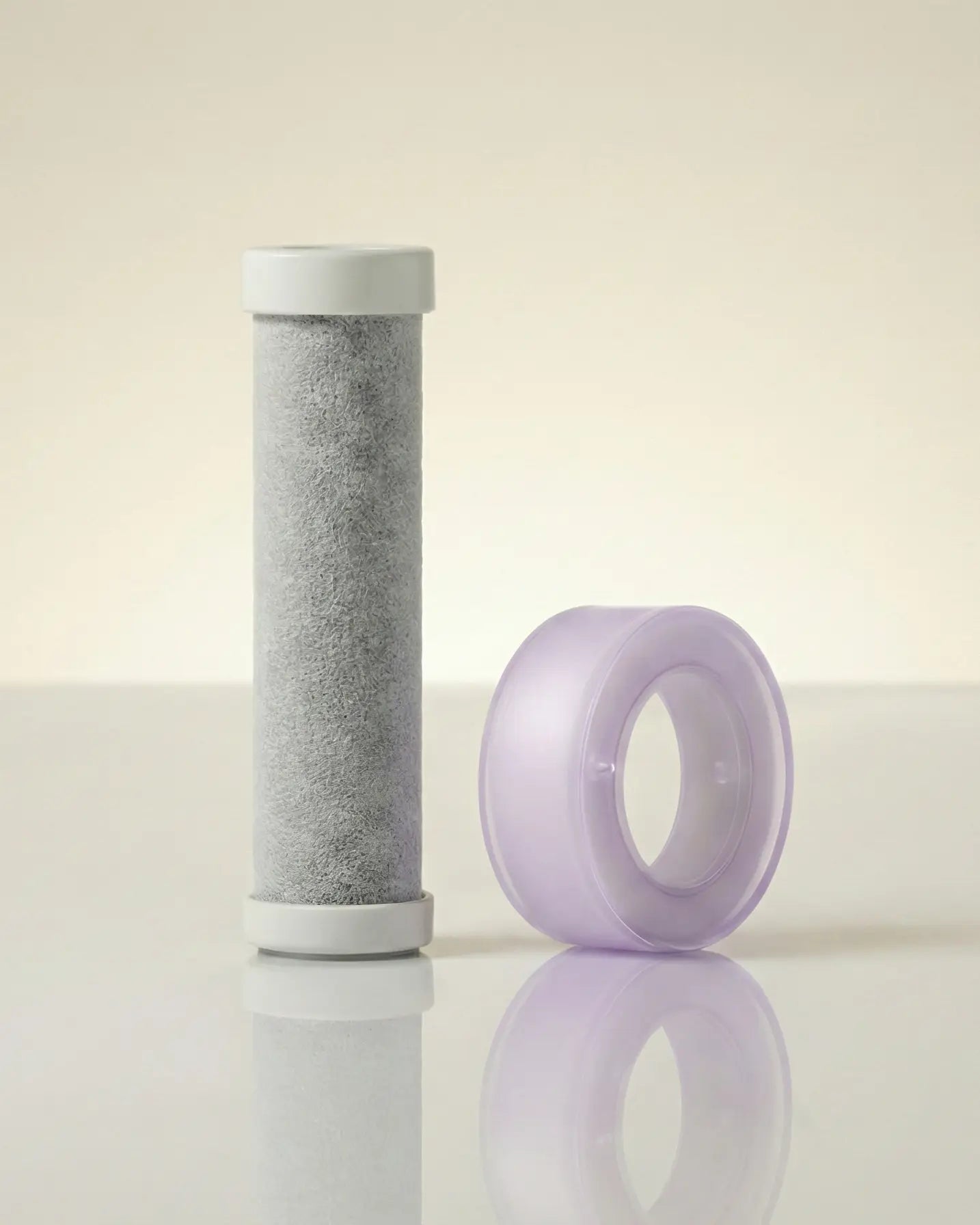 Replacement filter cartridges for the Clarine Halo Shower Head Filter. Each cartridge is designed to reduce chlorine, sediment, and heavy metals from your water supply. Features an integrated scent capsule for a pleasant shower experience. Recommended replacement every 60 days depending on water quality and usage. Simply twist out the old cartridge and insert the new one.